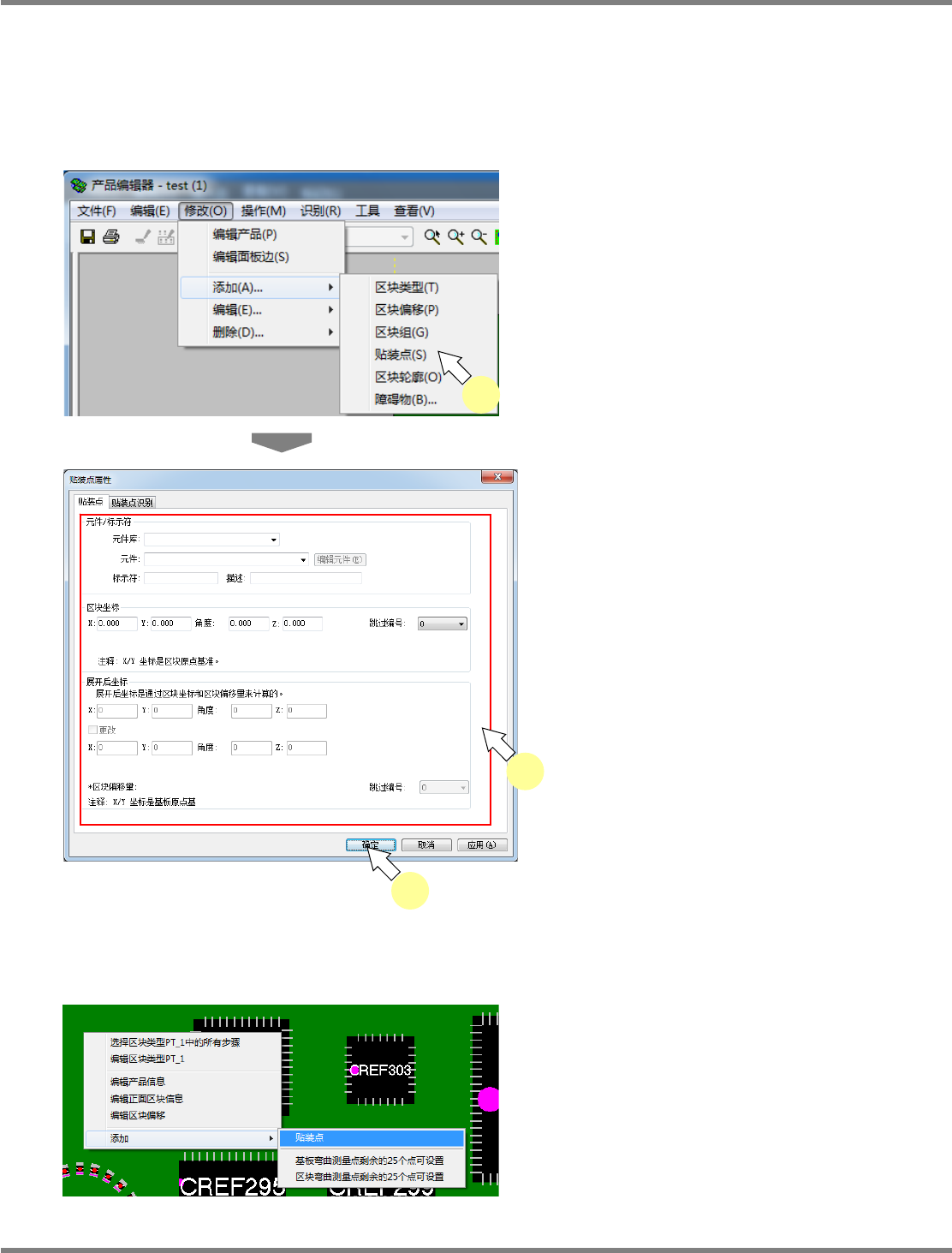 想要在基板上右击后的部位上添加贴装点时,