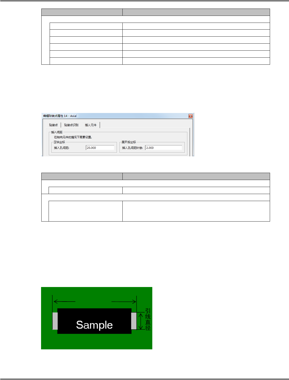 在横向编带元件下,引线长度可变,因此需要对每个贴装点设定插入孔间距和插入孔间距补偿。
