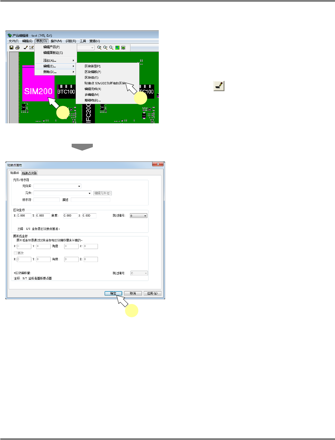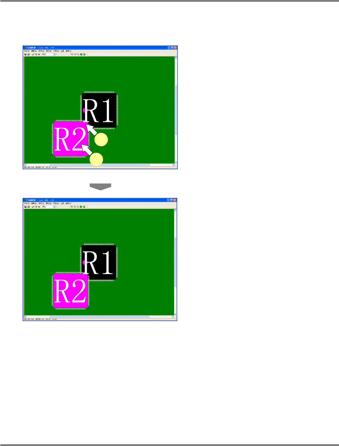 NPM-DGS 程序手册 5.8 PCB 编辑 Page 5-264 EJS9AC-MB-05P-31 实装点的编辑 1 在 PCB 编辑器的 PCB 图像中选择要进 行实装点编辑的元件。 2 选择菜单栏的 [ 修改 ] [ 编辑 ] [ 贴装 点 XXXX 为所有的区块 ] ,或者选择工 具栏的 ( 编辑实装点 ) , 或者在选择 的元件上弹出右击菜单,选择 [ 贴装点 ( 所有区块 )] 。 显示出 < 贴装点…