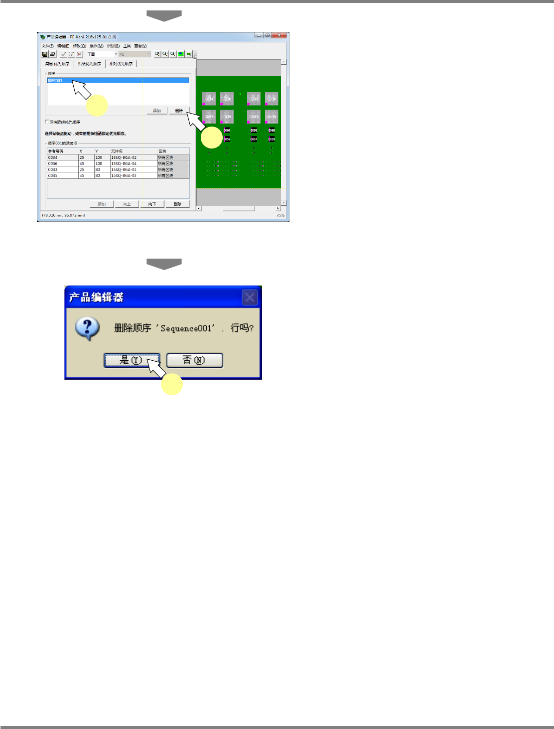 NPM-DGS 程序手册 5.8 PCB 编辑 Page 5-336 EJS9AC-MB-05P-31 相对优先顺序 在元件的上面进行贴装的 PoP 贴装,以及检查屏蔽盒下面的元件后 进行屏蔽盒贴装之际,使用本 相对优先顺序。将对每个贴装点设定 相应的相对关系。如果属于 PoP 贴装,将会编制确实贴装下 面元件后再贴装上面元件的生产数据 。 如果属于屏蔽盒, 将会编制在贴装屏蔽盒之前先检查屏蔽盒 下面元件的生产数据。 ( 如果不进行…