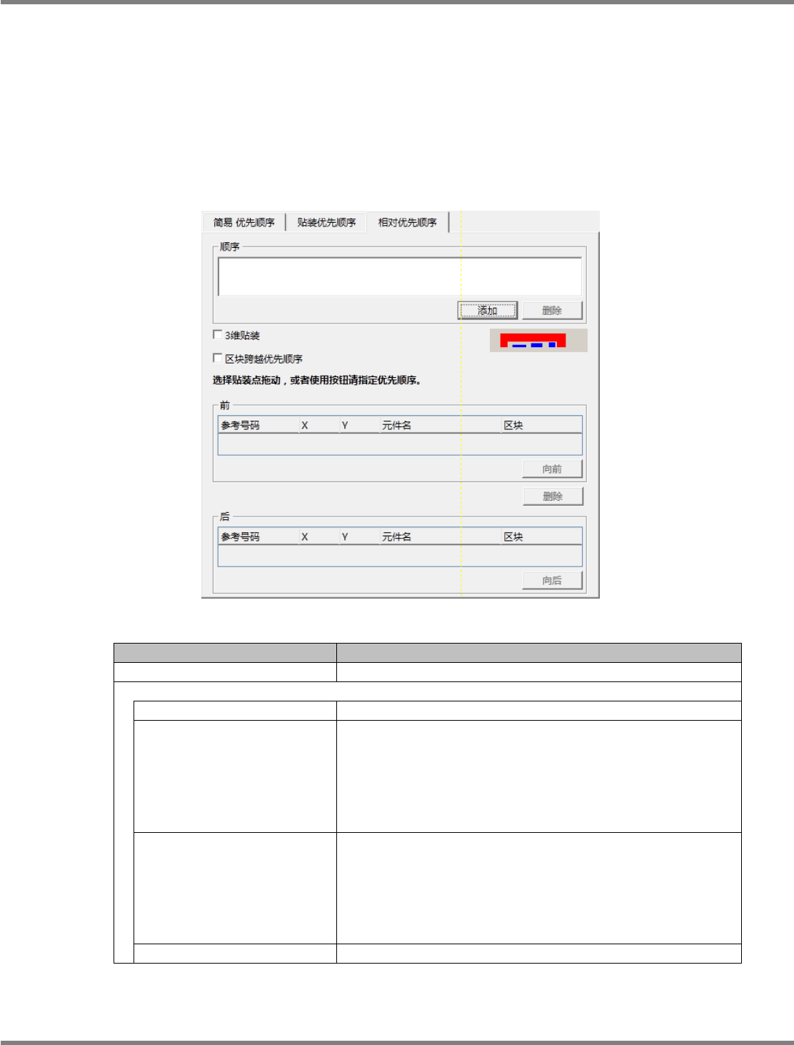 相对优先顺序。将对每个贴装点设定相应的相对关系。如果属于