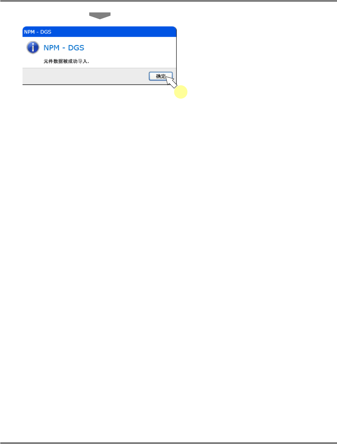NPM-DGS 程序手册 6.4 元件的导入、导出 Page 6-40 EJS9AC-MB-06P-28 元件导入的设定项目 项目 说明 ‘ 选择 ’( 复选框 ) 选择导入的元件。初期显示为选择了 全部元件的状态。 ‘ 元件名 ’ ‘ 库 ’ 显示导入元件的元件库名称。 ‘ 数据库 ’ 显示是否即已存在与导入元件相同的 元件。 ‘ 导入到 ’ ‘ 主 / 生产线选择 ’ 指定导入地点。 指定生产线时,请先通过下拉菜单选 择导入地点…