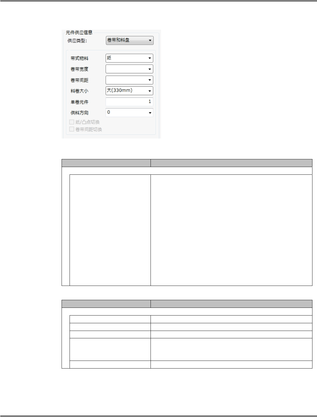 元件供应信息的设定项目如下所示。