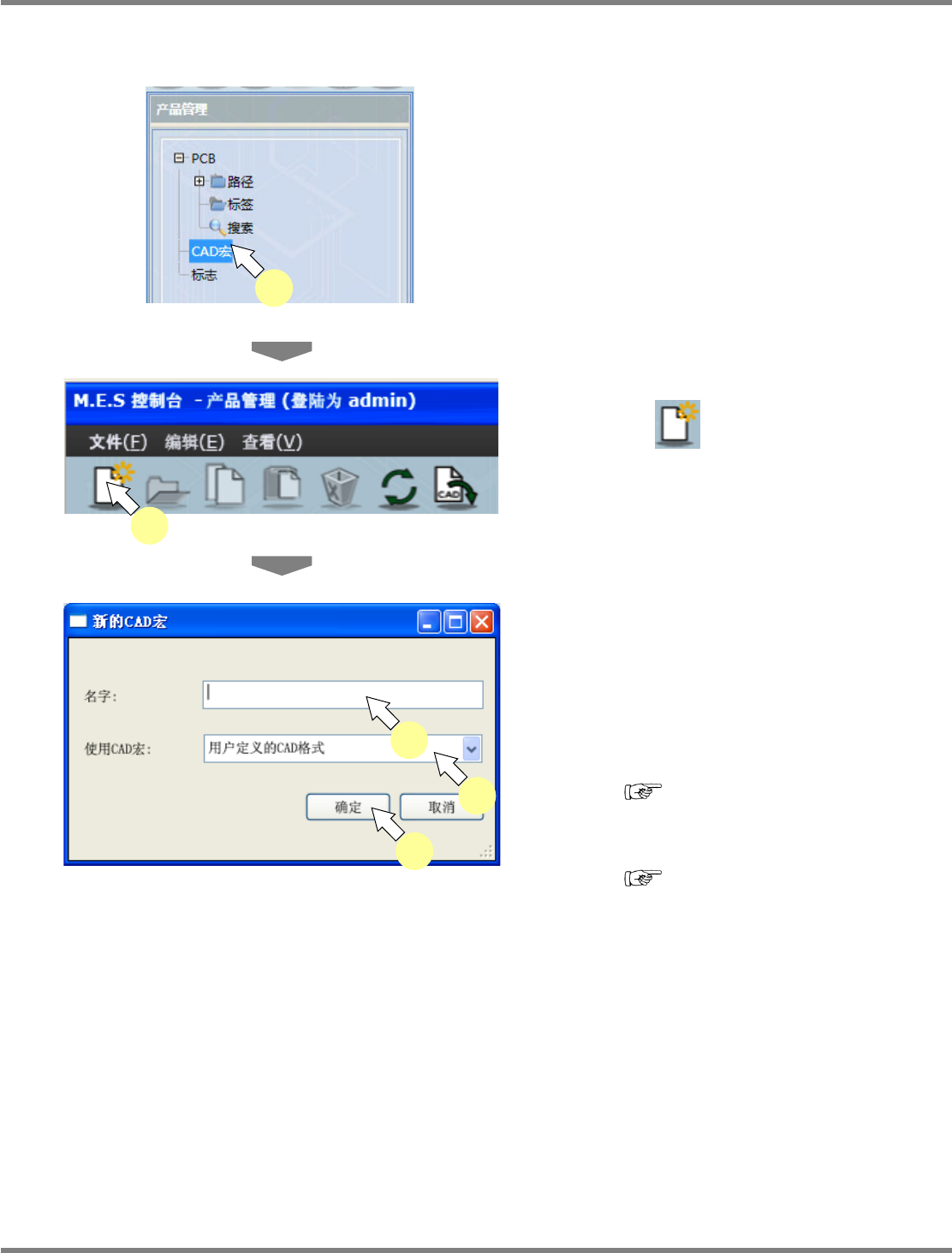 NPM-DGS 程序手册 5.2 CAD 宏的定义 Page 5-30 EJS9AC-MB-05P-31 5.2.1 CAD 宏编辑器 编制、编辑宏时,请按照以下步骤。 ---------- 设定要导入的 CAD/BOM 文件。 ---------- 对 CAD/BOM 文件格式进行定义。 ---------- 对获取 CAD 时的具体设定进行定义。 ---------- 保存所定义的宏文件。 ---------- 使用所定义的宏文件获…