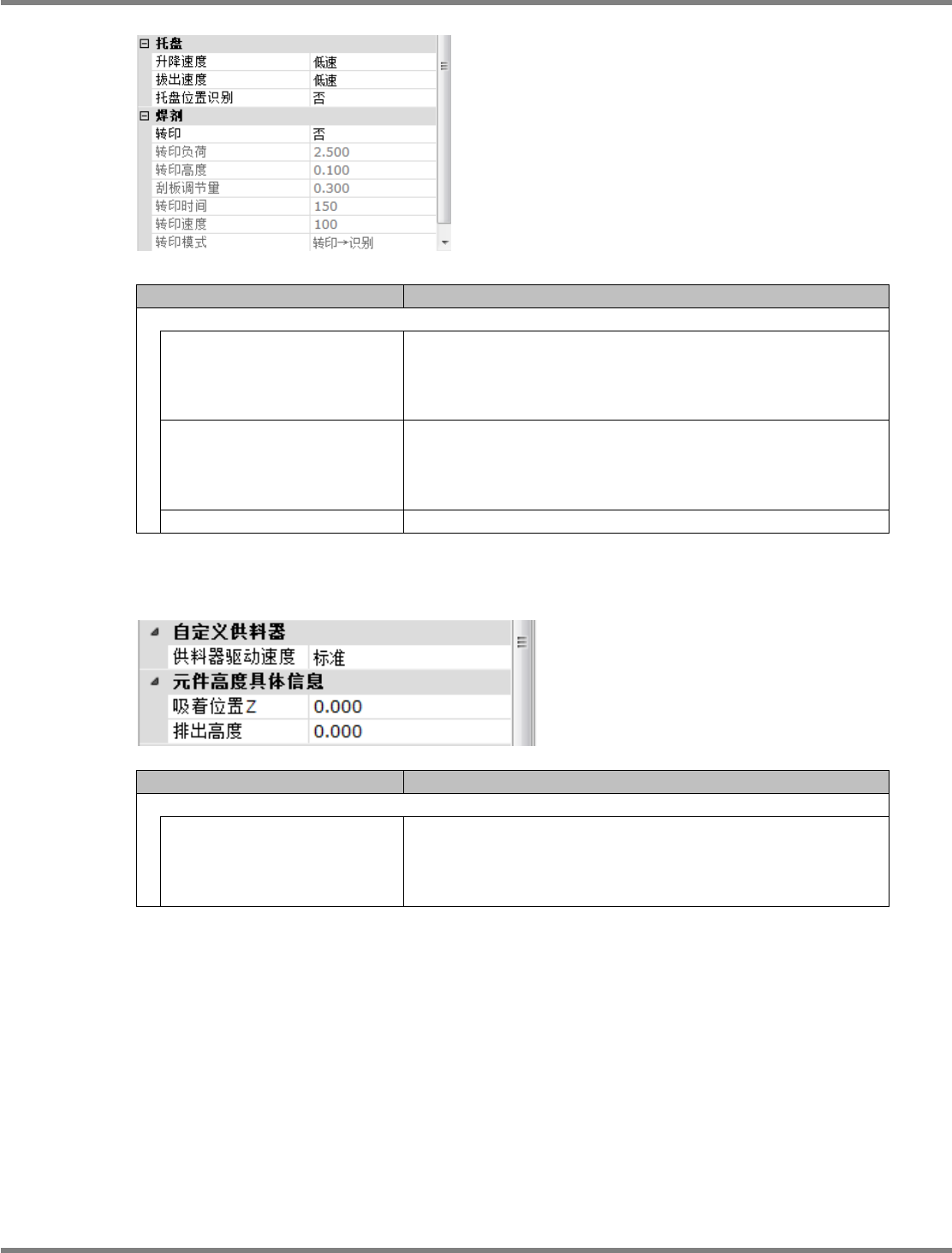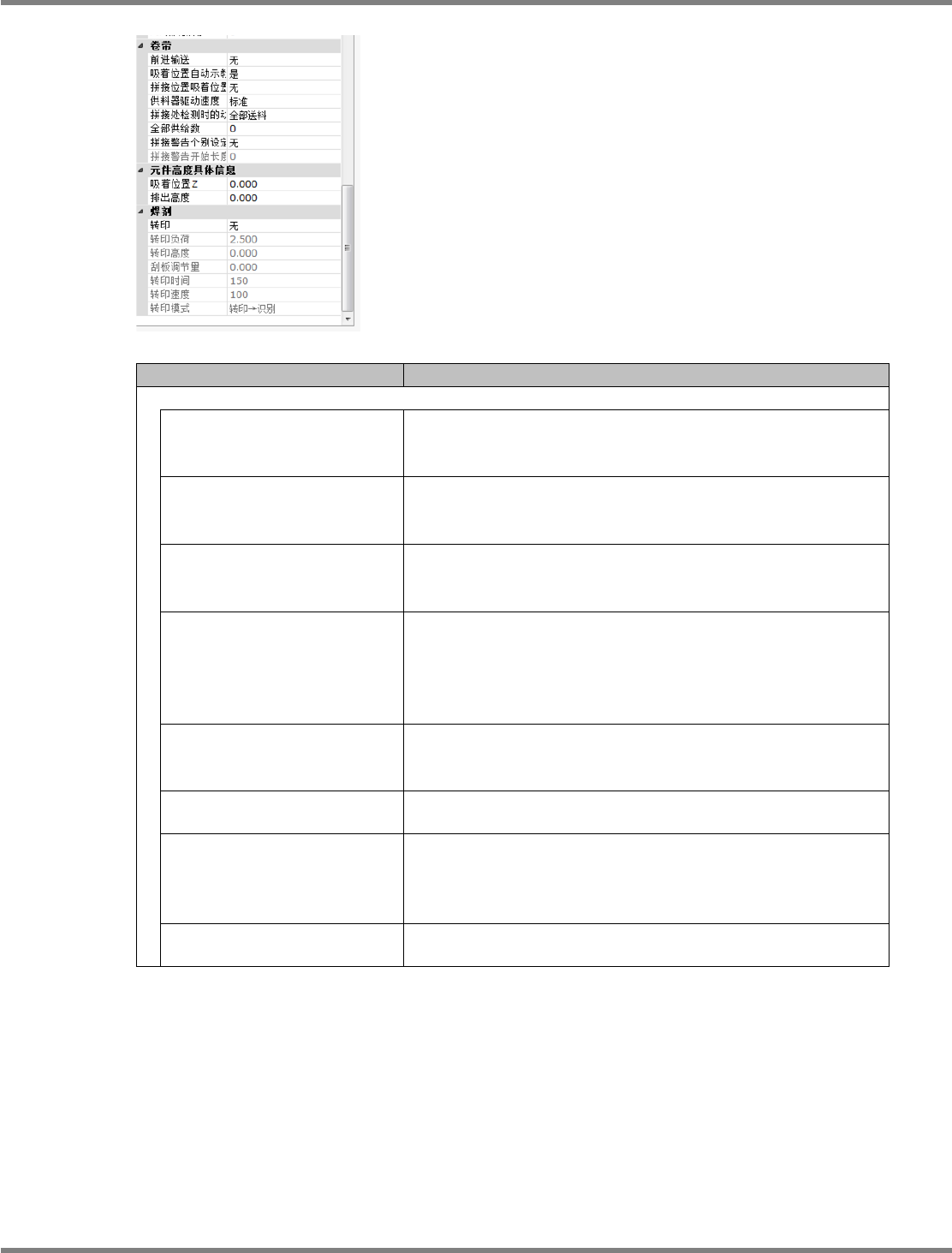 NPM-DGS 程序手册 6.5 添加新的元件 EJS9AC-MB-06P-28 Page 6-103 项目 说明 ‘ 元件高度具体信息 ’ ‘ 吸着位置 Z’ 请输入吸附表面的高度。吸附面比元 件表面凹进去时,请输入正 值。 0 ~ 芯片尺寸 T ‘ 排出高度 ’ 请输入贴装表面的高度。 贴装面比元件表面突出时, 请输入正值 。 0 ~ 21 ‘ 焊剂 ’ ‘ 转印 ’ 设定是否进行转印动作。 • [ 否 ] • [ 是 ] ‘ 转印…