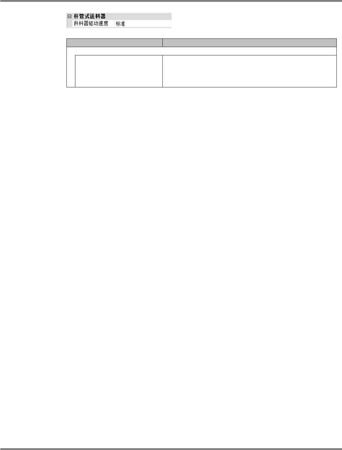 NPM-DGS 程序手册 6.5 添加新的元件 EJS9AC-MB-06P-28 Page 6-111 項目 说明 ‘ 杆管式供料器 ’ ‘ 供料器驱动速度 ’ 设定棒式供料器的供给速度。速度分 为下述三种 : • [ 标准 ] • [ 中速 ] • [ 低速 ] Parts060603S-5 5C03