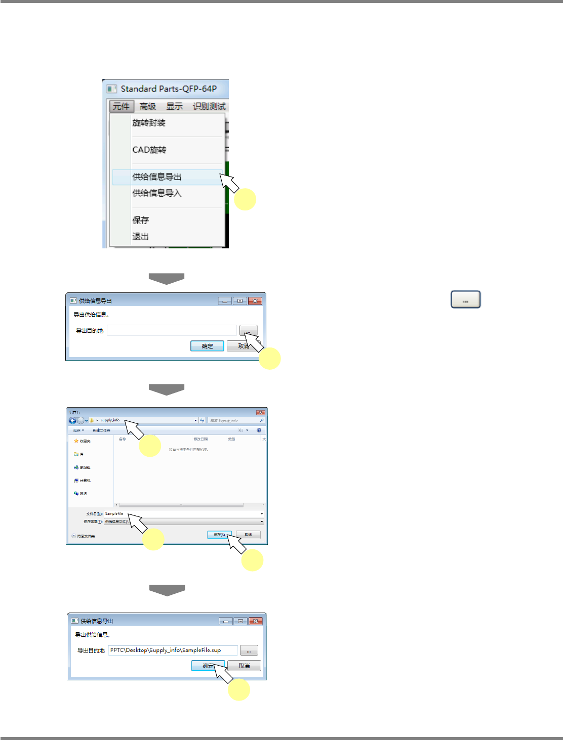 NPM-DGS 程序手册 6.5 添加新的元件 EJS9AC-MB-06P-28 Page 6-135 供给信息导出 在供给信息导出下, 可作为供料器种类的切换以及变更供给信息时的源数据而 以文件形式保存供给 数据。 1 从元件菜单中选择 [ 供给信息导出 ] 。 2 点击导出目的地的 。 显示出 < 另存为 > 画面。 3 选择导出目的地。 4 输入文件名。 5 点击 [ 保存 ] 。 将关闭 < 另存为…