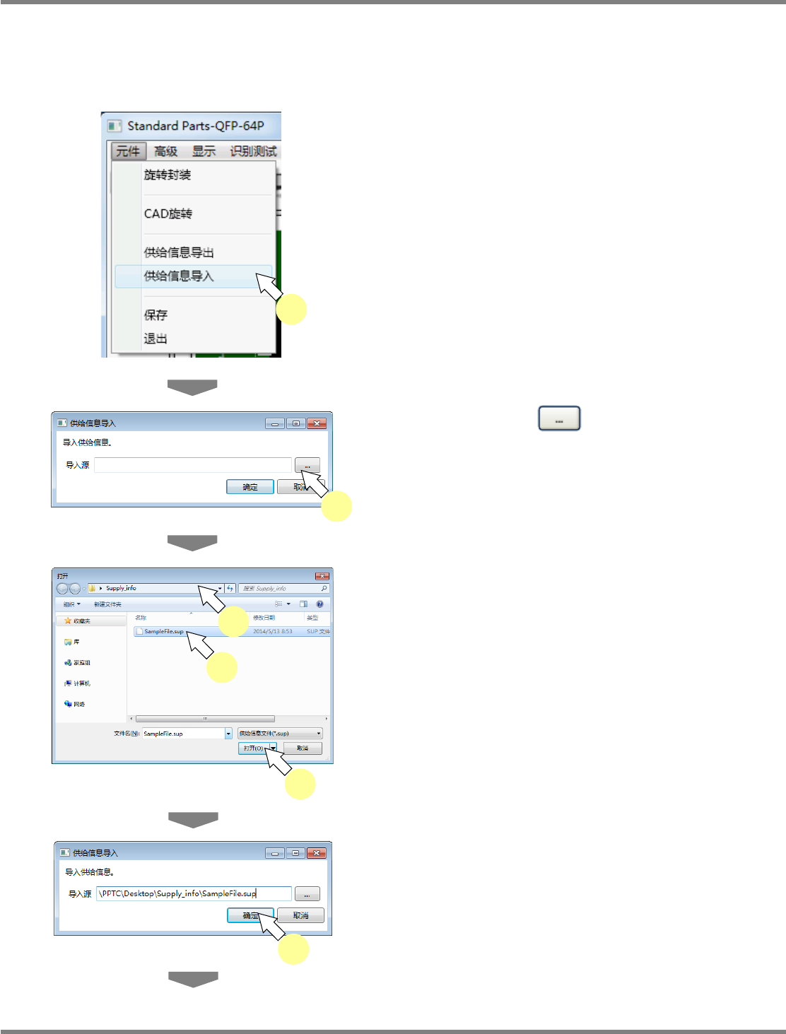 在供给信息导入下,根据每个贴装条件改变供料器种类,然后读取想要使用元件的供给信息文件。