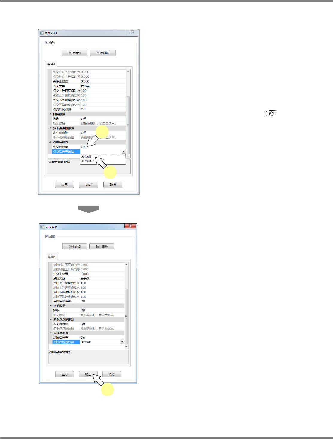 点胶设定已设为有的情况下,要进行点胶条件的设定。