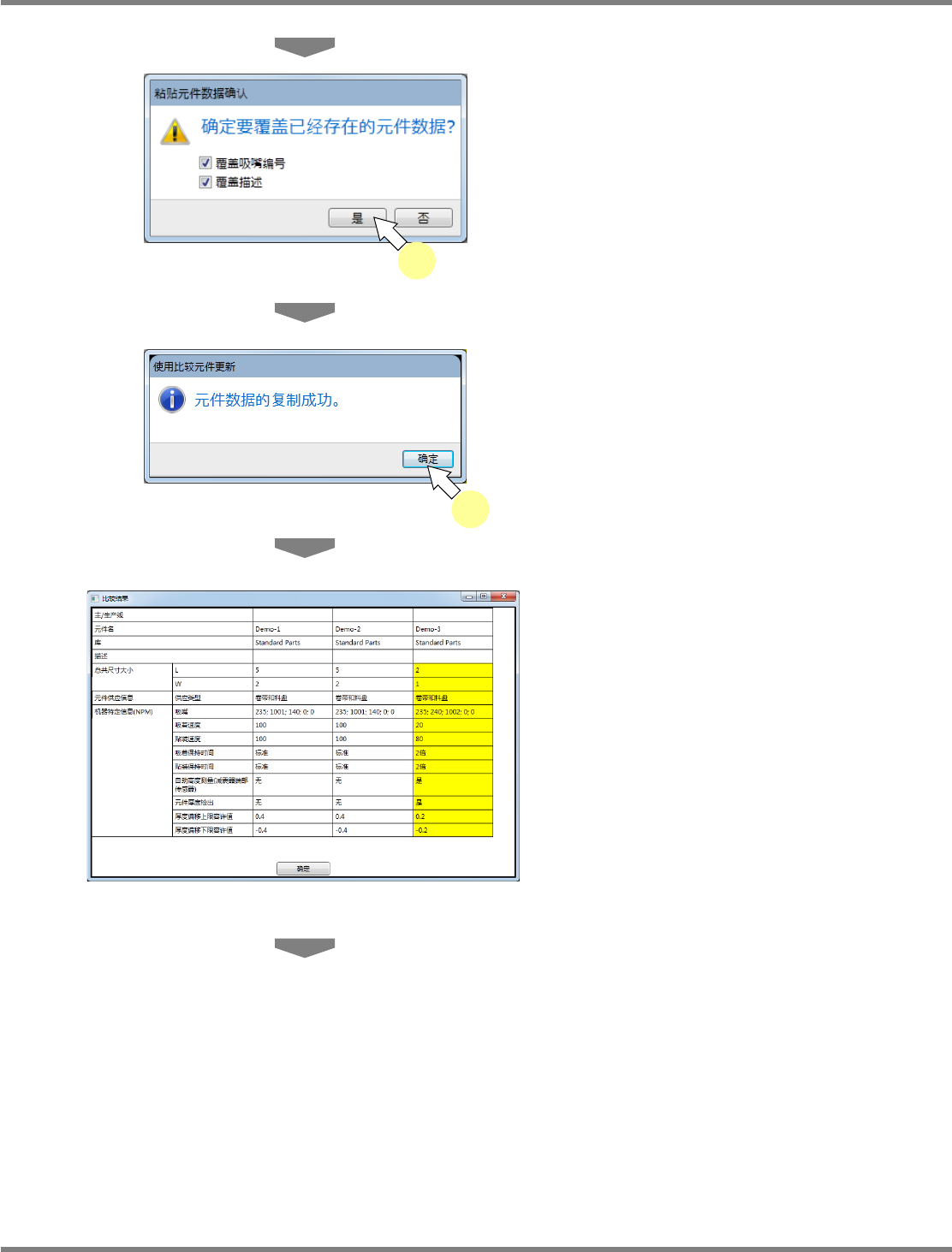 在元件数据的复制后,将自动更新比较结果画