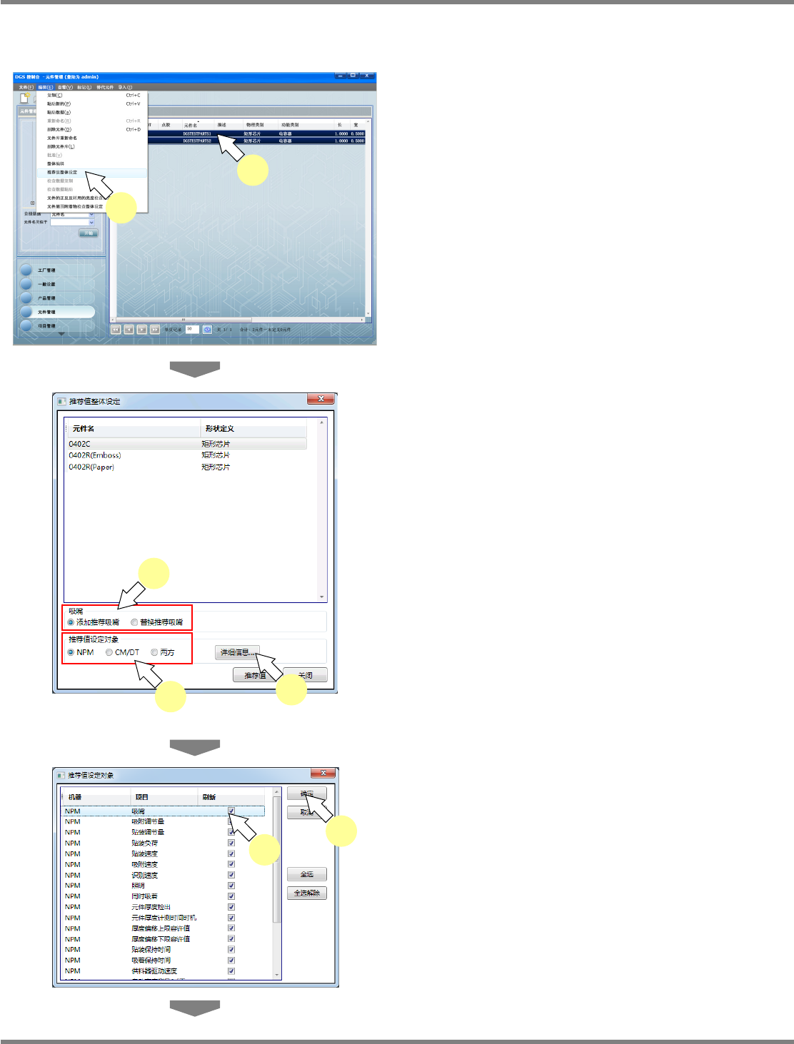 NPM-DGS 程序手册 6.7 现有元件的编辑 EJS9AC-MB-06P-28 Page 6-199 8 点击 [ 推荐值 ] 。 9 点击 [ 确定 ] 。 所选择的元件将被设定为推荐值。 Parts060800S-2 5C04 8 Parts060800S-2 9C00 9