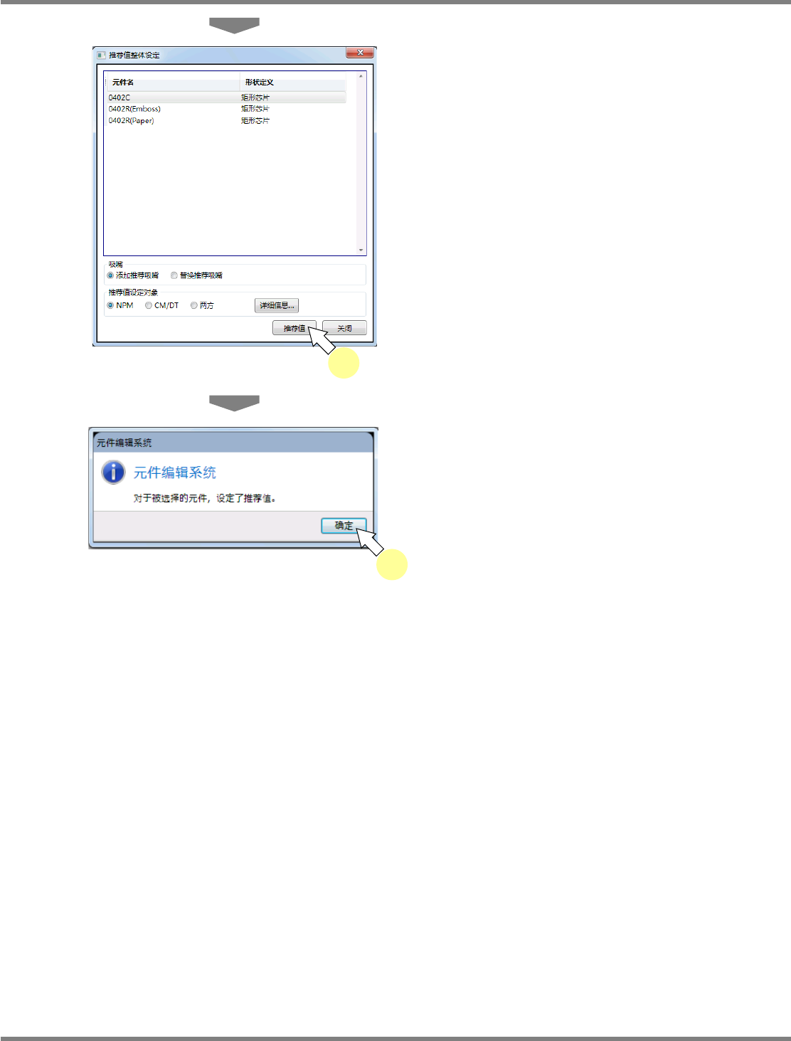 推荐值的设定,因机种与元件种类的不同,已分别自动设定。