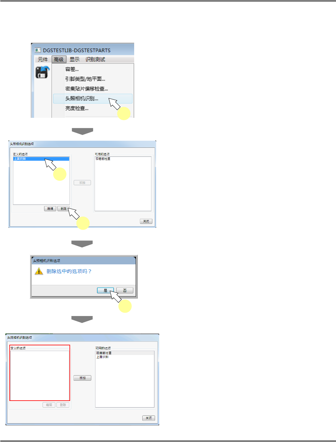 在这项功能下,删除设定在元件上的头照相机识别选项。