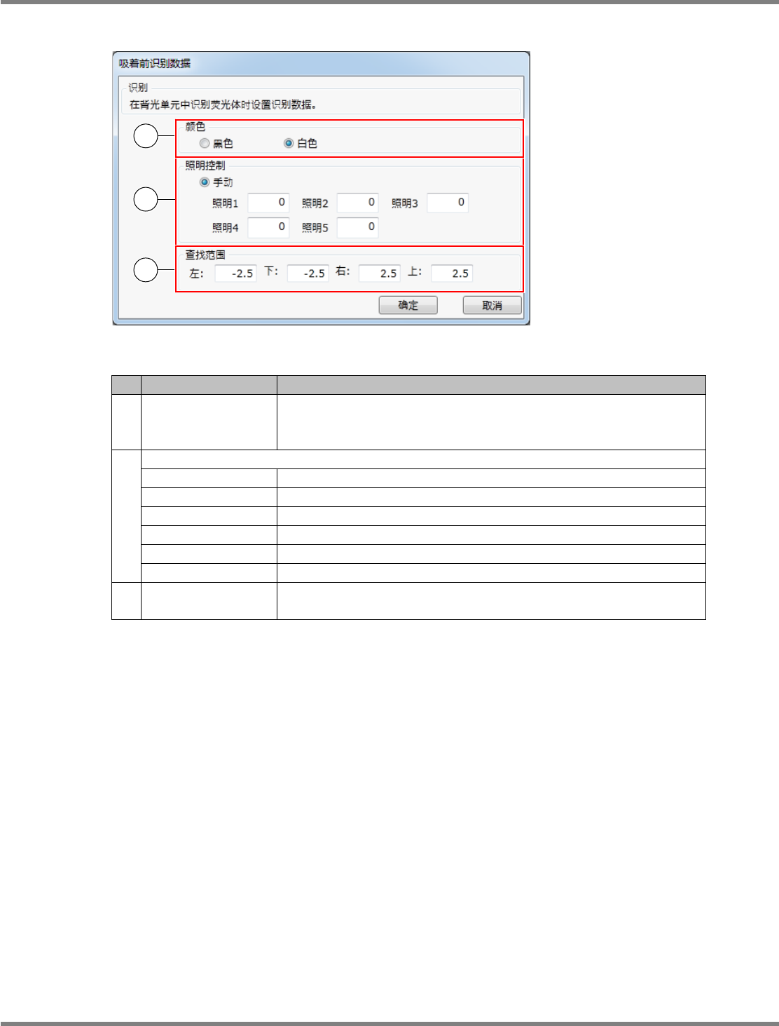 吸着前识别数据的设定项目