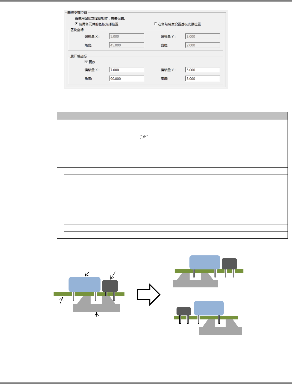 在需要变更基板支撑位置时,设定这个项目。