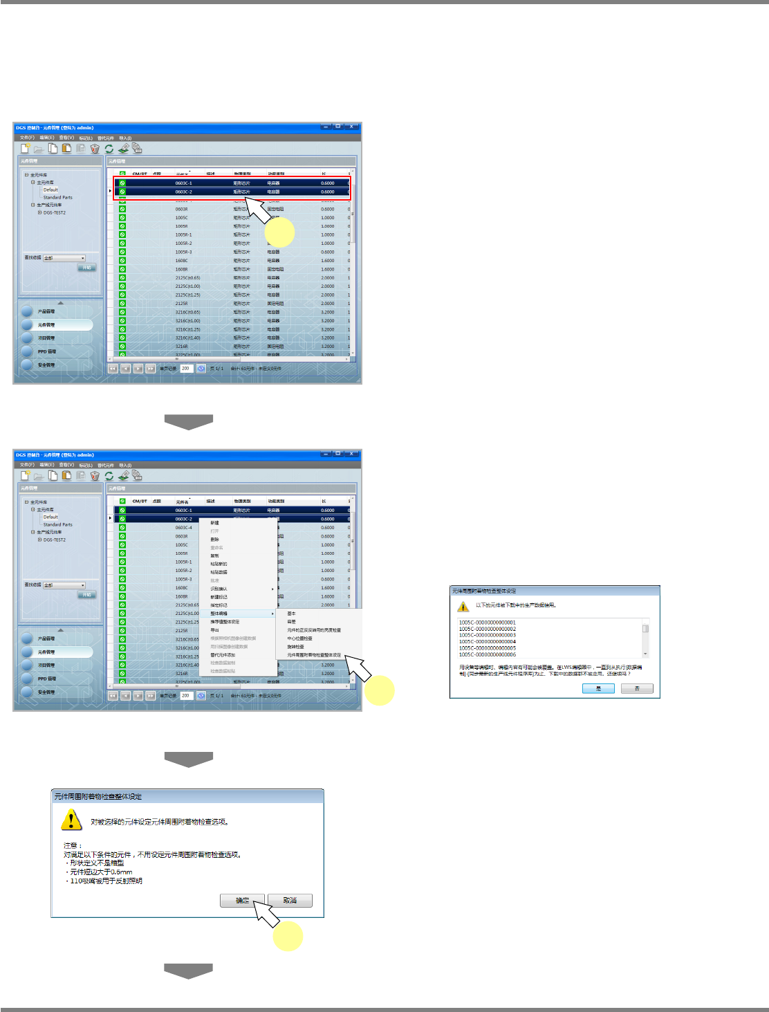 在这个功能下,能够在元件管理画面上设定元件周围附着物检查。