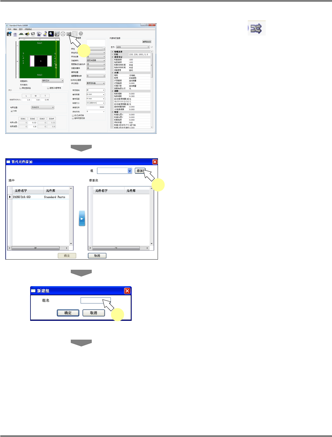 NPM-DGS 程序手册 6.8 代替元件的设定 Page 6-222 EJS9AC-MB-06P-28 在元件编辑器画面上新添加 1 点击代替元件按钮 ,或者点击 菜单的 [ 高级 ] [ 替代元件 ] 。 显示出 < 替代元件添加 > 画面。 2 点击 [ 添加 ] 。 显示出 < 新建组 > 画面。 3 输入组名称。 不能使用下列半角字符。 ¥ / : ? “ < > |…