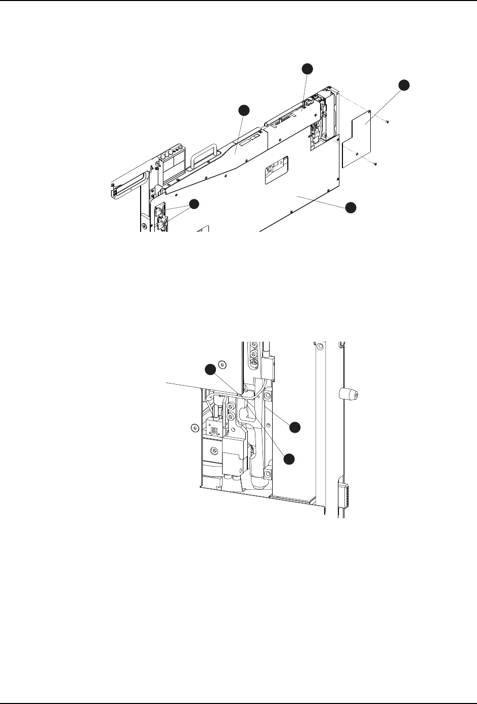 1. 请拆除供料器的挡板 (1) 与挡板 (4)。
