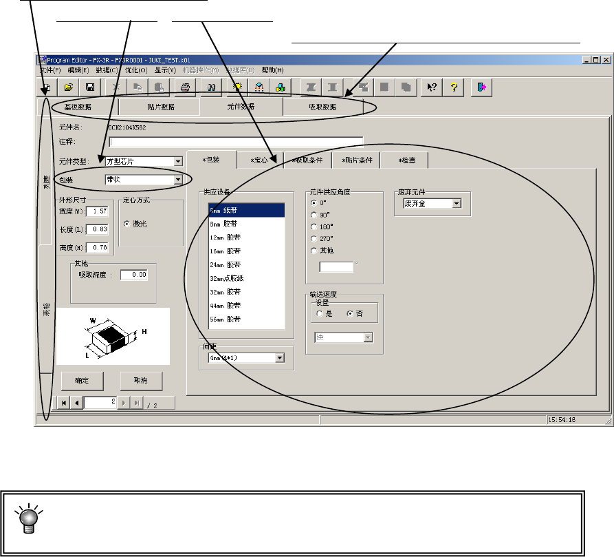 元件数据的制作画面(元件表格)包含初始画面在内,共由5个画面(“包装”、“定心”、“吸取
