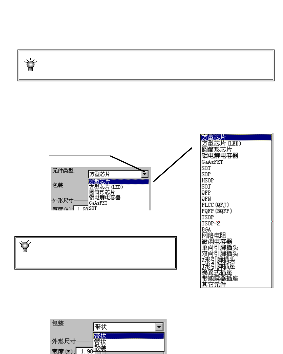需要进行变更时,请从下拉式列表中选择元件包装方式。