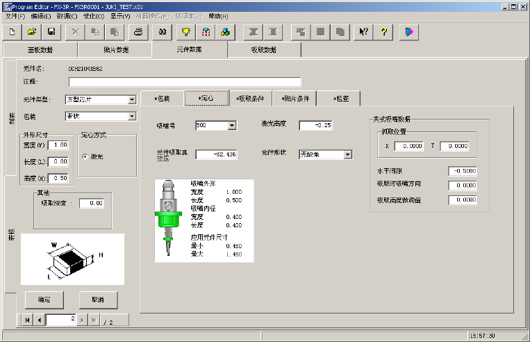设置“吸嘴号”、“元件吸取真空压”、“激光高度”、“元件形状”、“夹式吸嘴数据”。