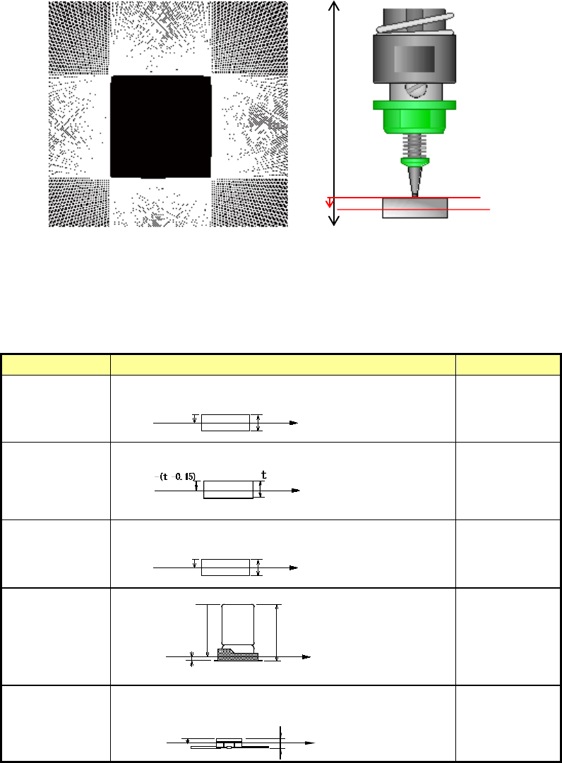 EPU 使用说明书 第 4 章 制作生产程序 4- 61 ( 3 )激光高度 设置激光定心时 的测量高度。 输入从吸嘴顶端 到激光照射到的测量位置 的距离。 虽然根据元件高度与元 件种类自动决定初始值, 但有时不同的元件 ( 激 光测定位置为圆筒形或透 明时等情况下 ) , 需要改变初始 值。 此外,引脚前端 或元件的表面/背面等不 太遮挡激光的部分与激光 等高时, 有时也会出现错 误。 请设置可进行稳 定识别的高度。 ◆ 默认值 激光…