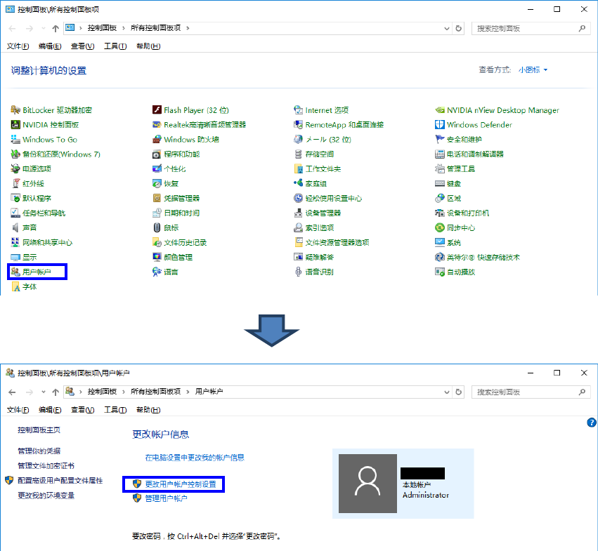 请使用以下方法将「用户账户控制」暂时设置为无效状态。