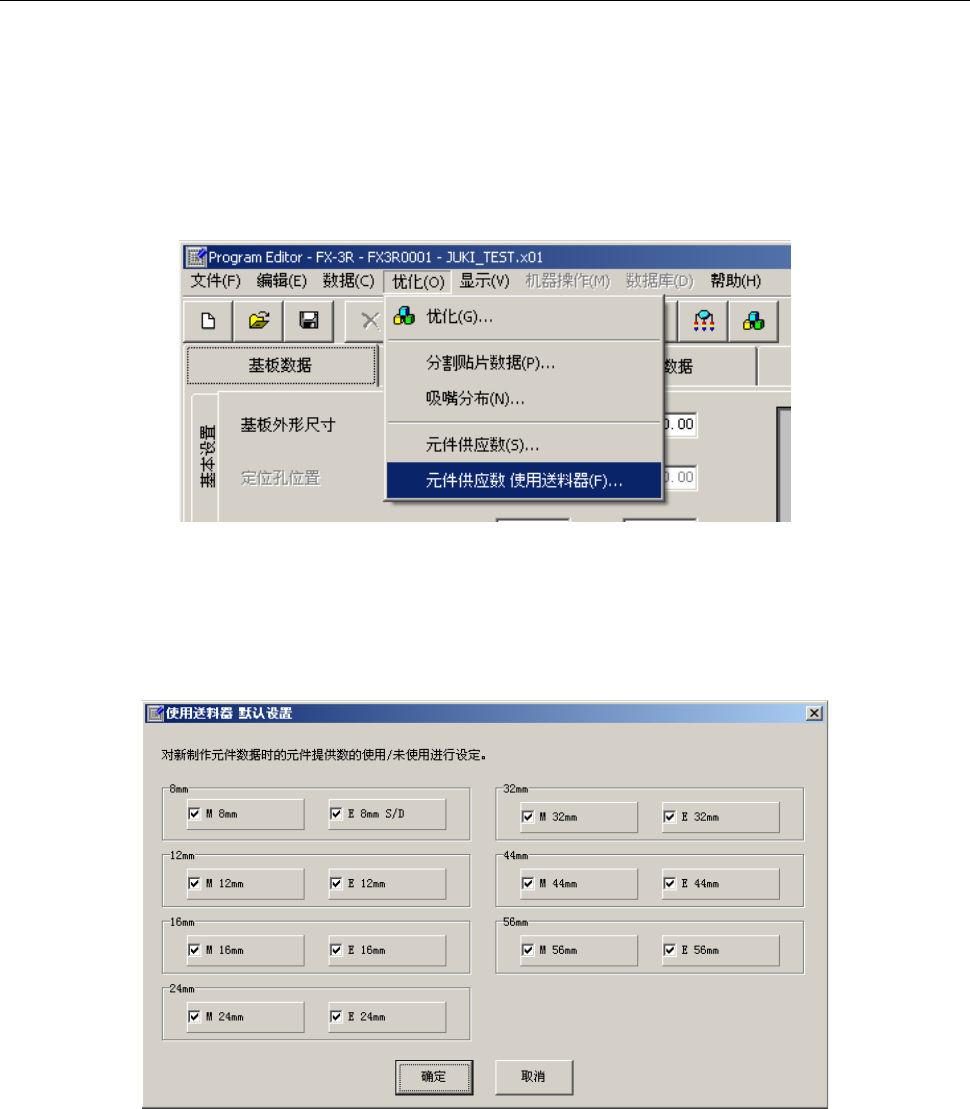 ② 会显示如下的“使用供料器 默认设置”画面。