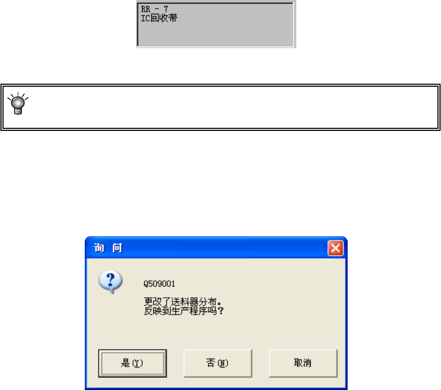 编辑后关闭供料器分布画面时,会显示下列信息,询问是否把编辑内容反映到程序数据中。