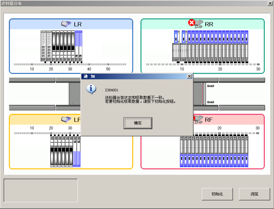 请用浏览模式确认连接台架和吸取数据的供料器类型。
