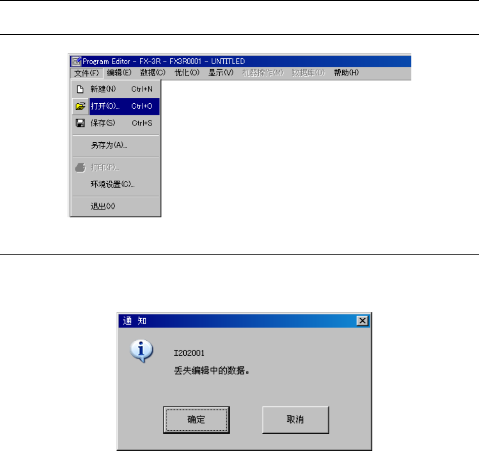 EPU 使用说明书 第 4 章 制作生产程序 4- 11 3 4-3 其他功能 4-3-1 文件 以下对文件菜单 的操作方法进行说明。 4-3-1-1 新建 新建文件时 , 请选择菜单栏中的“文 件” / “新建”。 将生产程序 的数据初始化 。 如有未保存的生 产程序 , 则显示确认信 息。 图 4-3-1-1-1 生产程序确认信息 在此 , 按下“ 确认 ” , 则不保存文件而直接将其初始化。按下“ 取消 ” , 则中止处理 ,…