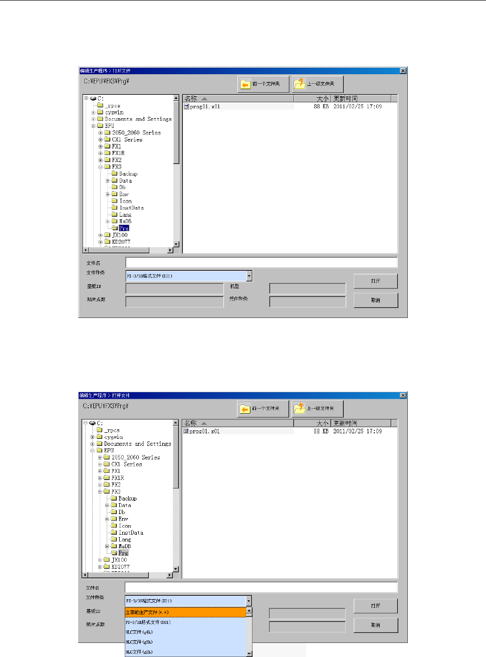 若要读取其他机种的生产程序时,请选择“文件类型”后,再点击“打开”。