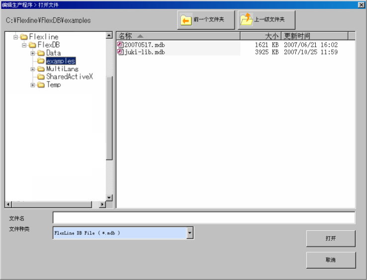 ②单击“浏览”,在“打开文件”画面中选择数据库文件。