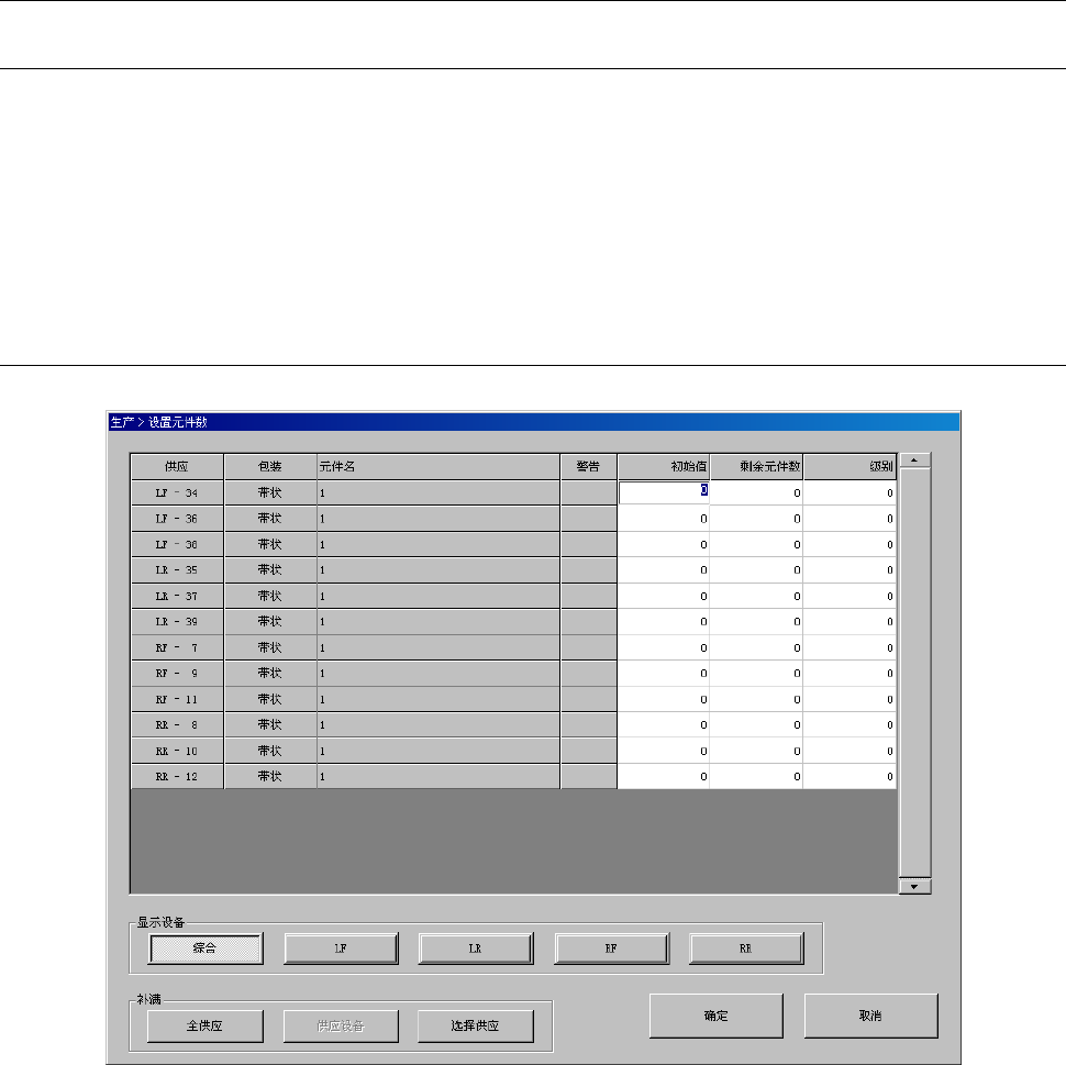 ·显示参见元件数时的元件剩余数。生产时每吸取一件元件,则从