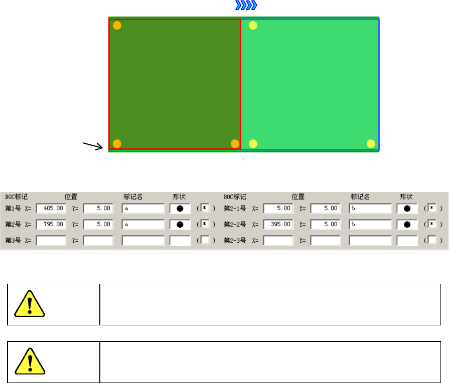 例) 单板基板 左→右传送,基板尺寸为800mm时,按照示例输入第1BOC标记设置及第2BOC标记设置。