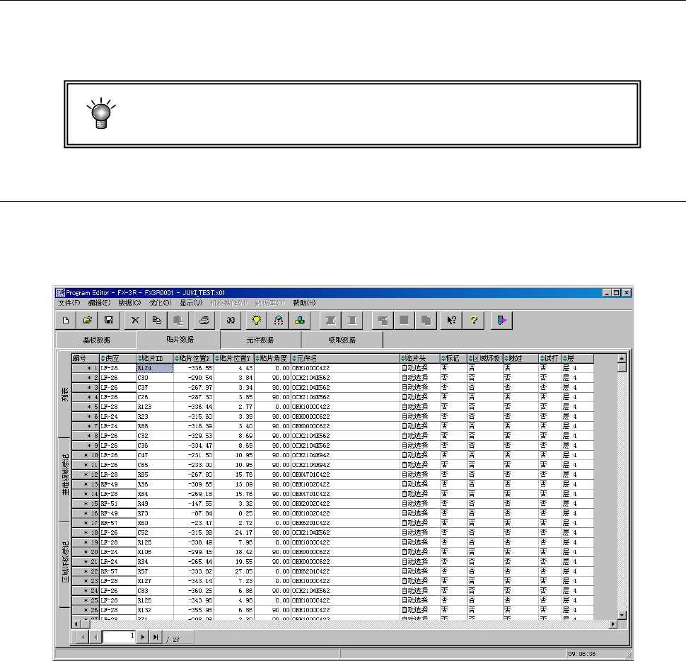 制作基板数据后,单击画面上方的“贴片数据”选项卡,可显示贴片数据制作画面(下图为制作