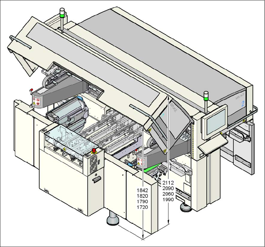 3 Datos técnicos de la máquina automática I nstrucciones de servicio SIPLACE Serie-X 3.3 Dimensiones y peso A partir de la versión de software SR.605.xx Edición 07/2008 ES 114 3.3.2.3 Dimensiones de la máquina autom átic…
