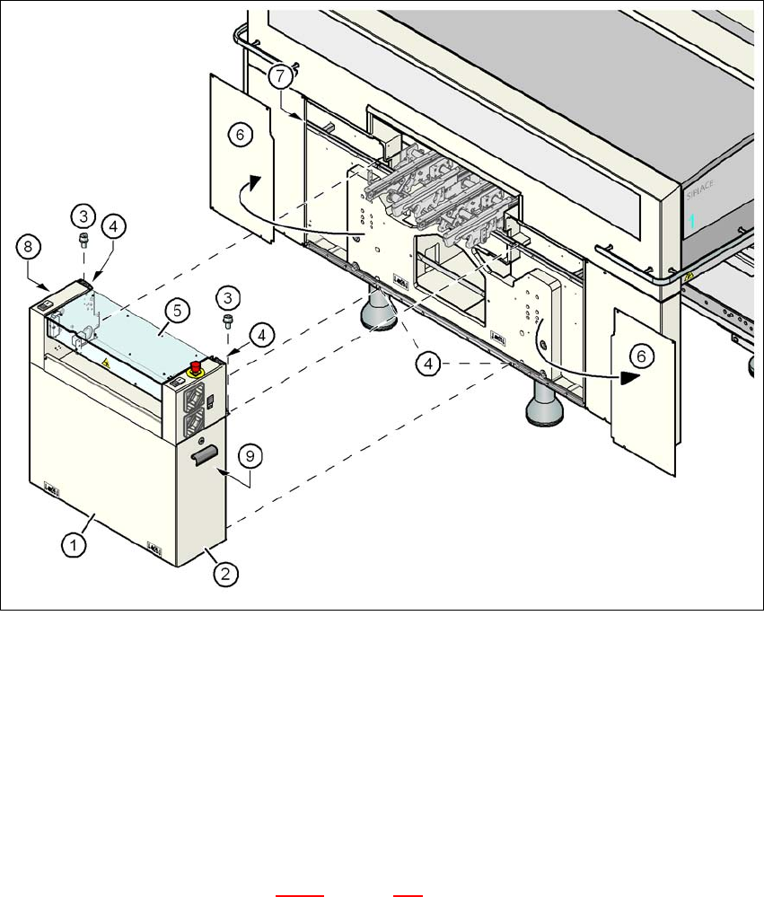 Instrucciones de servicio SIPLACE Seri e-X 4 Instalación y puesta en servicio A partir de la versión de software SR.605.xx 4.3 Instalación de la máquina automática Edición 07/2008 ES 285 → Retire las dos chap as laterale…