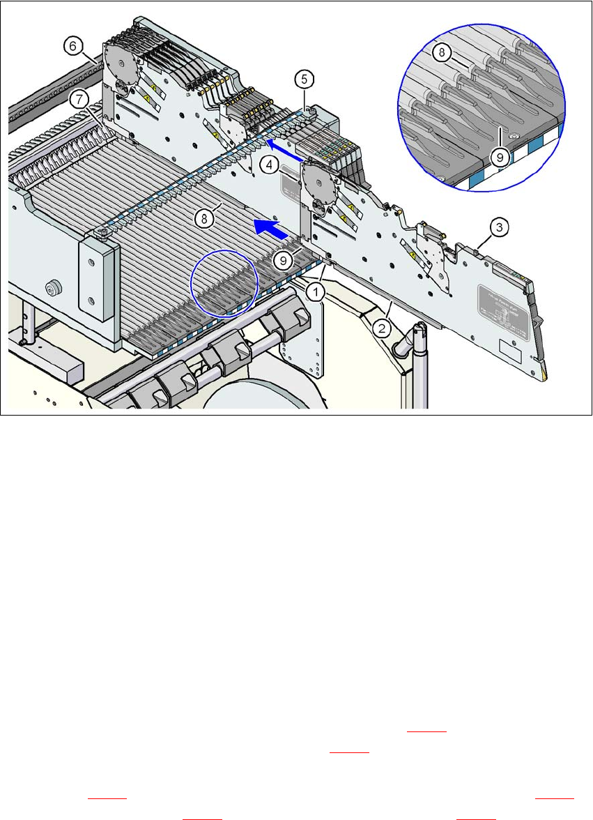 5 Tareas para los operadores Instrucciones de servicio SIPLACE Serie-X 5.6 Equipar los alimentadores A partir de la versión de software SR.605.xx Edición 07/2008 ES 344 → Siga empujando co n cuidado el aliment ador , has…