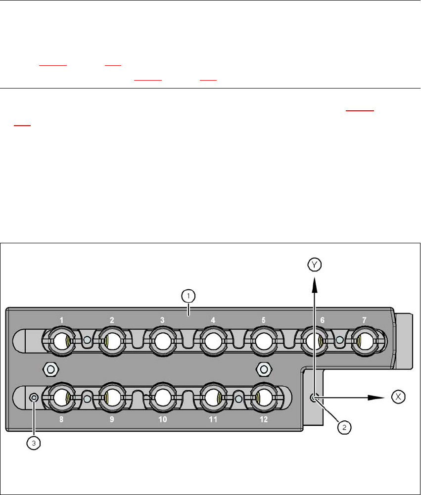 Fig. 6.1 - 7 Cargador de pipetas - numeración de posición, marcas para la determinación de la posición y la posición