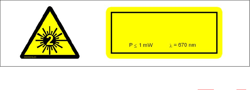 Fig. 6.18 - 1 Identificación de la clase láser 2 para el sensor