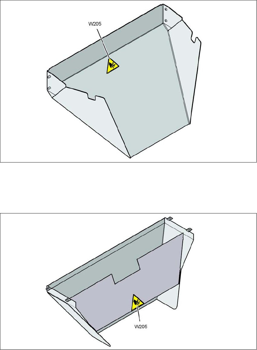 2.2.3.3 Aviso de advertencia W205 en el vertedor inclinado para desechos de cinta