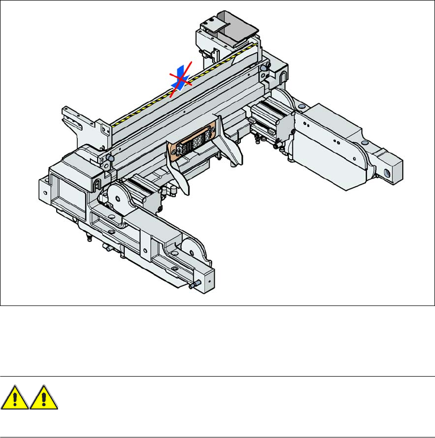Fig. 2.2 - 8 Franjas de advertencia en el canal guía de la cinta vacía del dispositivo para retraer el carro de