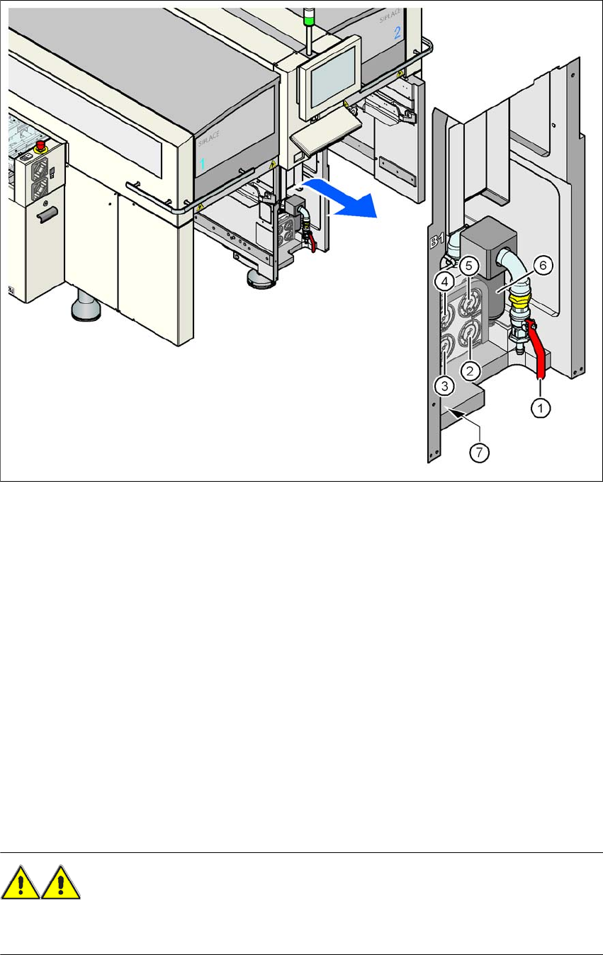 2 Seguridad de servicio Instrucciones de servicio SIPLACE Serie-X 2.8 Bloqueo de la alimentación de aire comprimido y reducción de presión A p art ir de la versión de software SR.605.xx Edición 07/2008 ES 92 Fig. 2.8 - 1…