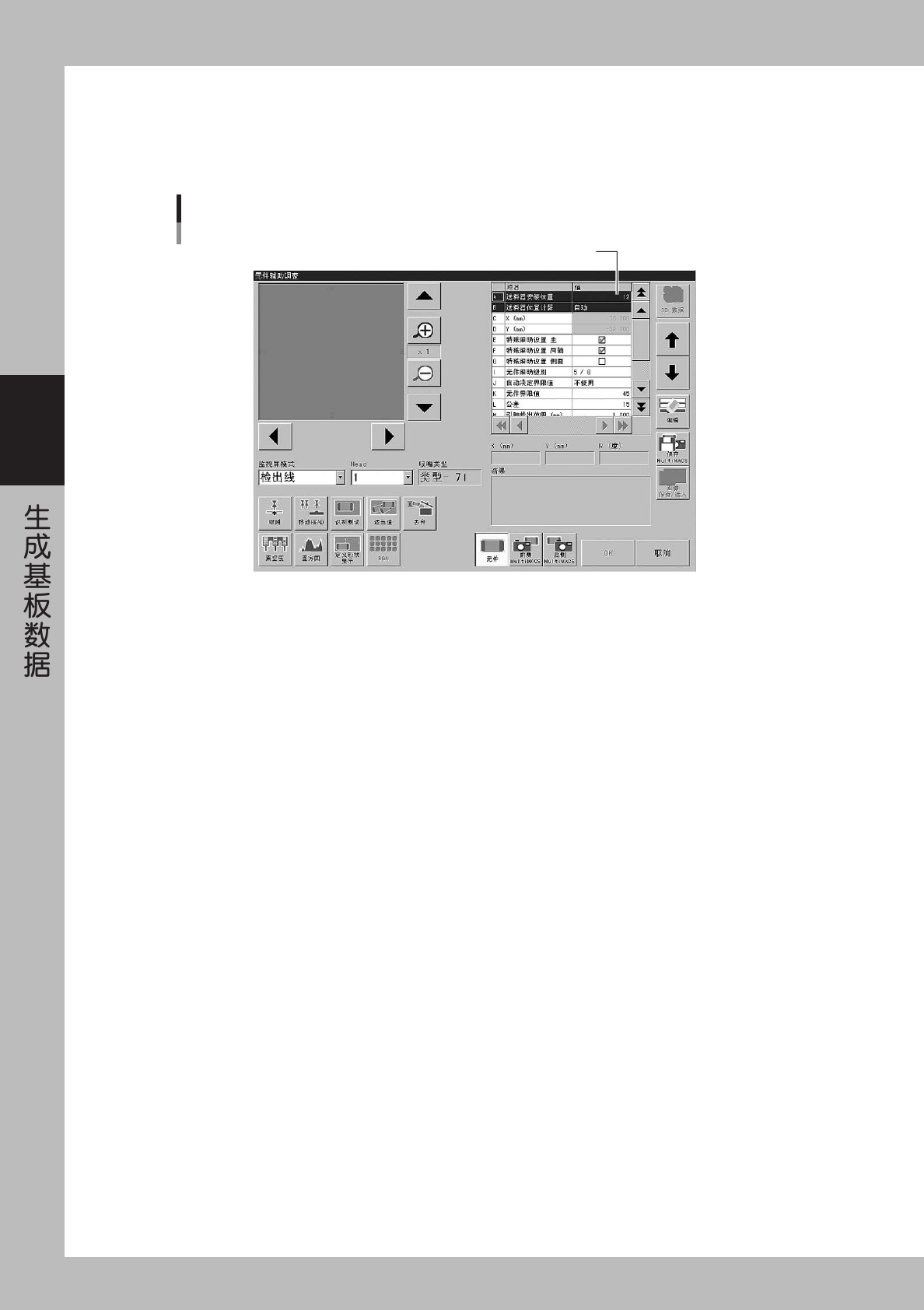 使用贴装头的号码和吸嘴的类型被显示。如需变更贴装头号码,请从「Head」栏中选择。如需变更吸嘴类