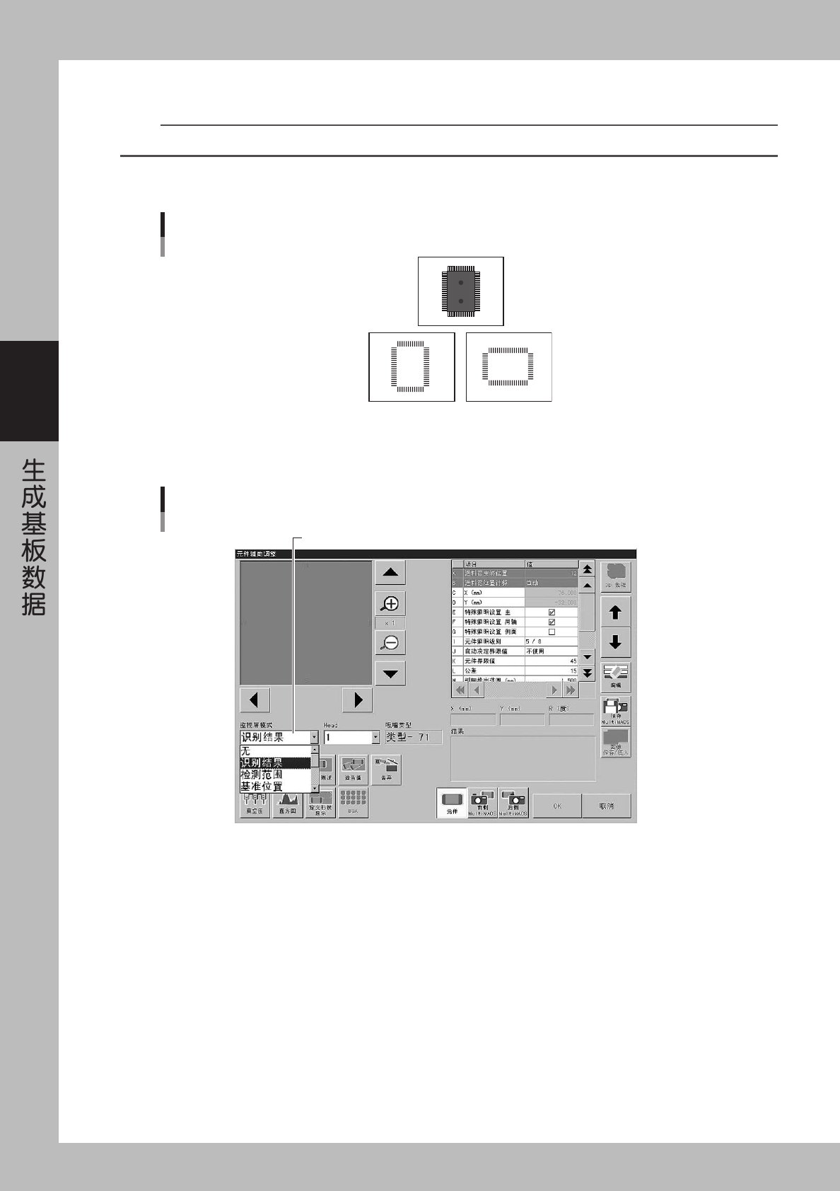 3-45 3 4 . 8 . 2 执 行 B G A 球 引 角 元 件 的 信 息 编 辑 使 用 元 件 辅 助 调 整 设 置 B G A 球位 置 信 息 。 由 于 识 别 元 件 时 使 用 该 信 息 , 使 C S P 等 的 微 型 B G A 型 元 件 的 识 别 成 为 可 能 。 进 行 该 球 引 角 元 件 的 编 辑 , 必 需 将 基 本 参 数 的 「 校 正 类 型 」 设 置 为 「 B G A …
