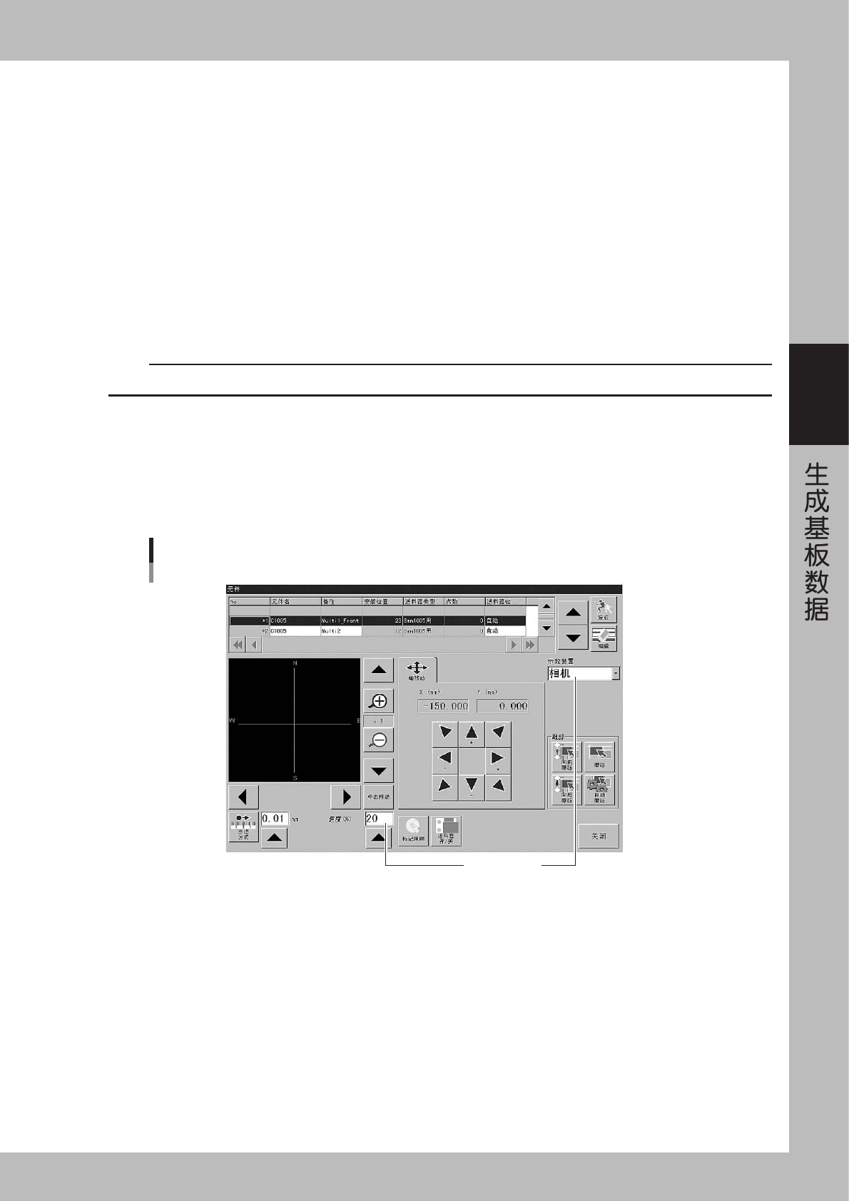 3-52 3 8 示 教 吸 附 位 置 。 请 按 下 列 步 骤 示 教 吸 附 位 置 。 1 . 将 「 送 料 器 位 置 计 算 」 从 「 自 动 」 变 更 为 「 相 对 示 教 」 。 但 是 , 基 板 数 据 生 成 后 , 不 需 将 送 料 器 安 装 位 置 最 优 化 ( 要 固 定 送 料 器 安 装 位 置 ) 时 , 请 设 置 为 「 示 教 」 。 2 . 按 「 示 教 」 按 钮 , 打 开…