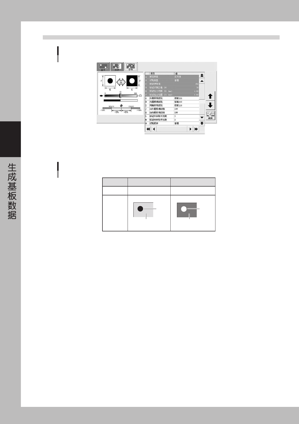 请输入标记的外形尺寸。请参照下表输入用圆规等测得的正确数值。 基本参数的「标记功能」设置为「坏板标记」时,该参