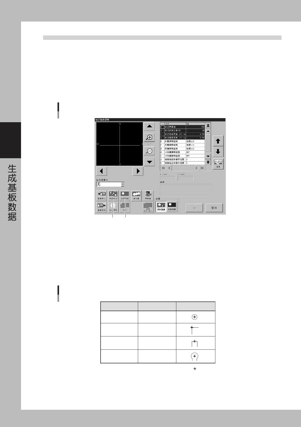 指将标记图像用 2 值化图像识别时,为排除标记内、外侧出现的干扰而使用的数值。请用后述的标记调整求得最佳值并输入。