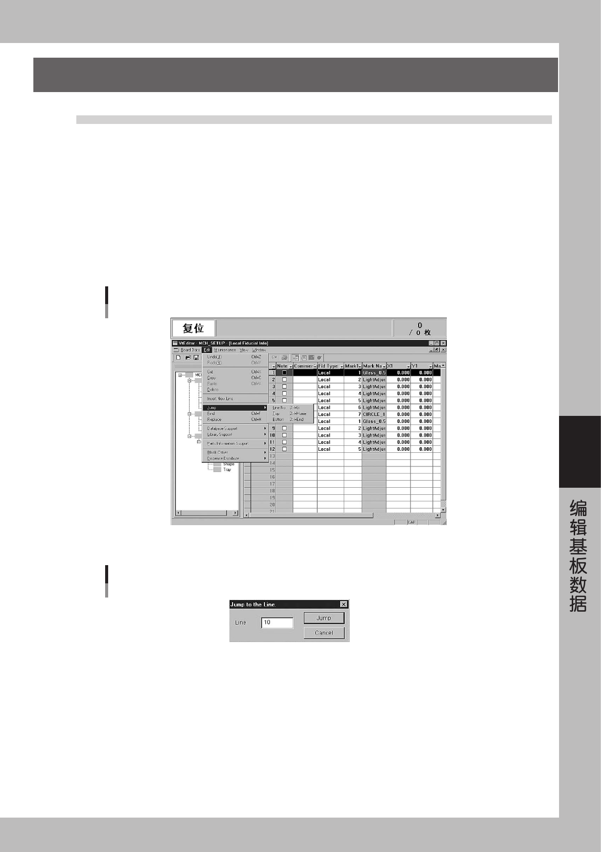在主画面,可以将光标位置移到首行、最后行或指定号码行。在贴装信息、元件信息、标记信息、拼块循环、局